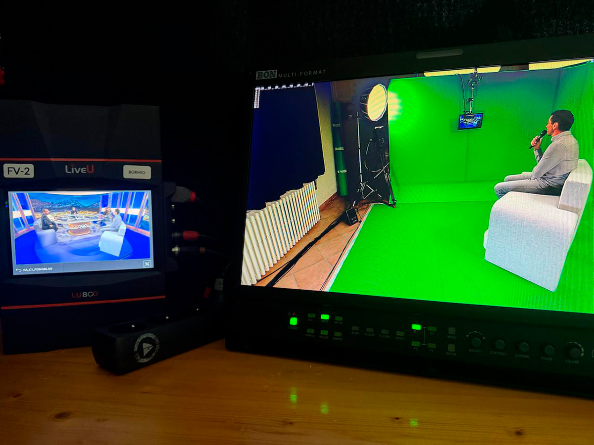 Les quatre plateaux distants à Livigno, Bormio, Anterselva et Tesero sont conçus par Videlio pour filmer les athlètes et les présentateurs. Ils maximisent l’interaction avec le plateau principal de Milan. Contraintes par les halls d’hôtel des lieux des épreuves sportives, les hauteurs sous plafond sont souvent faibles – à savoir 2,50 mètres. Chaque site est alors équipé d’un fond vert de 3 mètres par 4 en forme de L sur deux murs, le sol et le plafond.