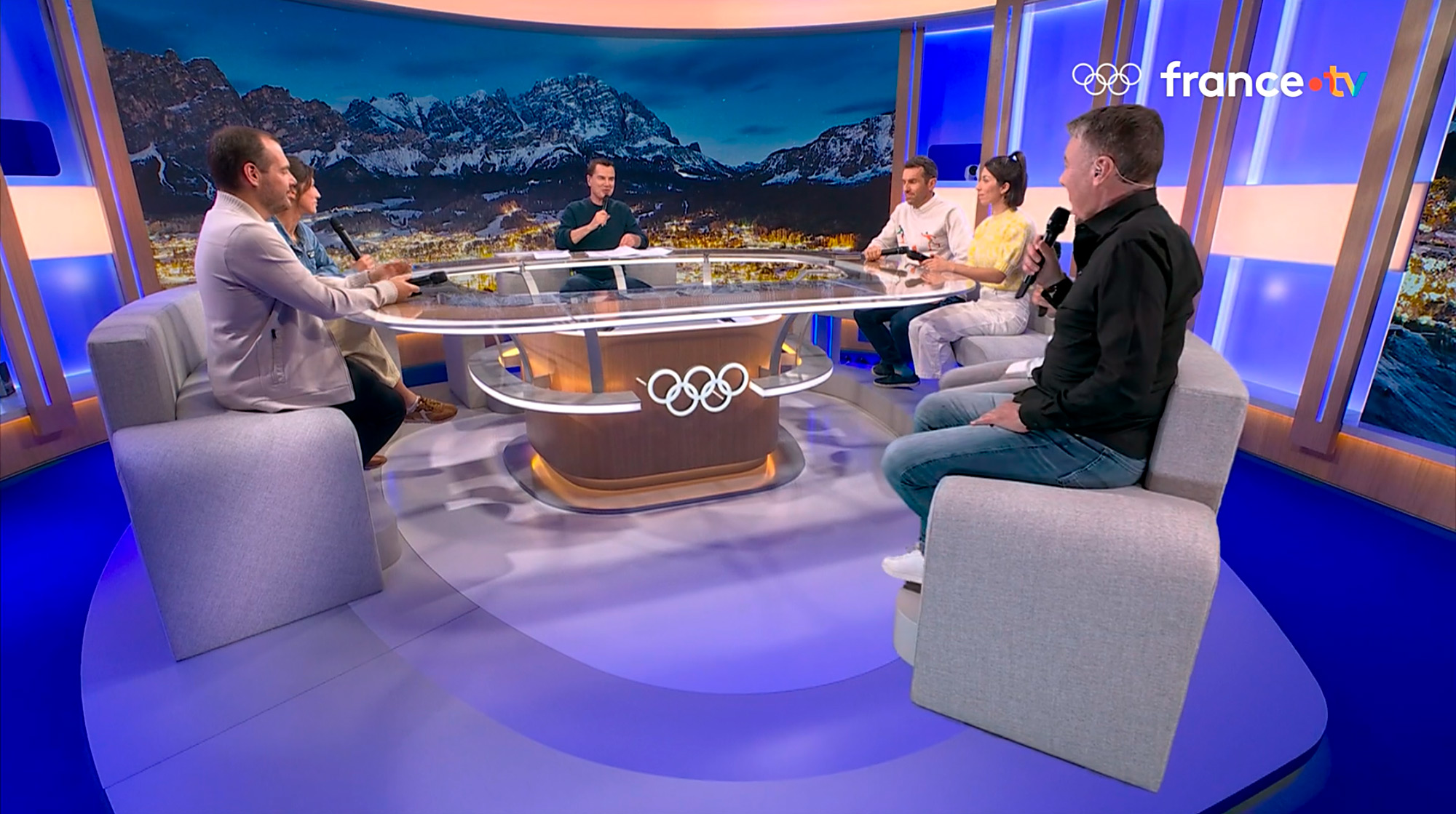 Pascal Golomer, directeur du service Sport de France TV, explique : « Le plateau des jeux de Milan-Cortina fonctionne toute la journée, du matin avec Télématin jusqu’au soir minuit avec JO Club ». C’est ici que les présentatrices et présentateurs passent du curling au ski alpin, du patinage artistique au snowboard, du biathlon au saut à ski.