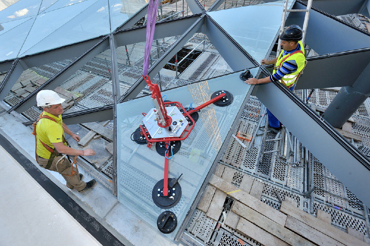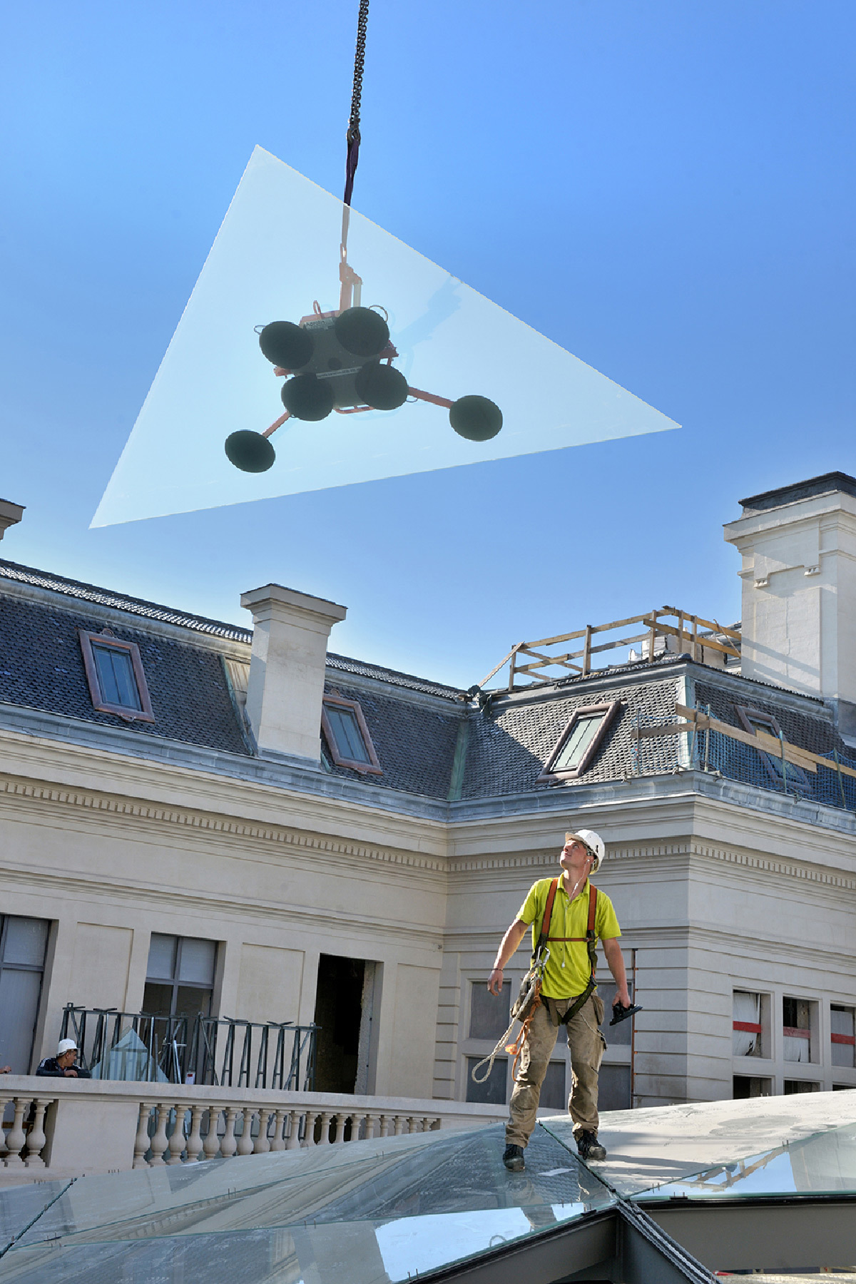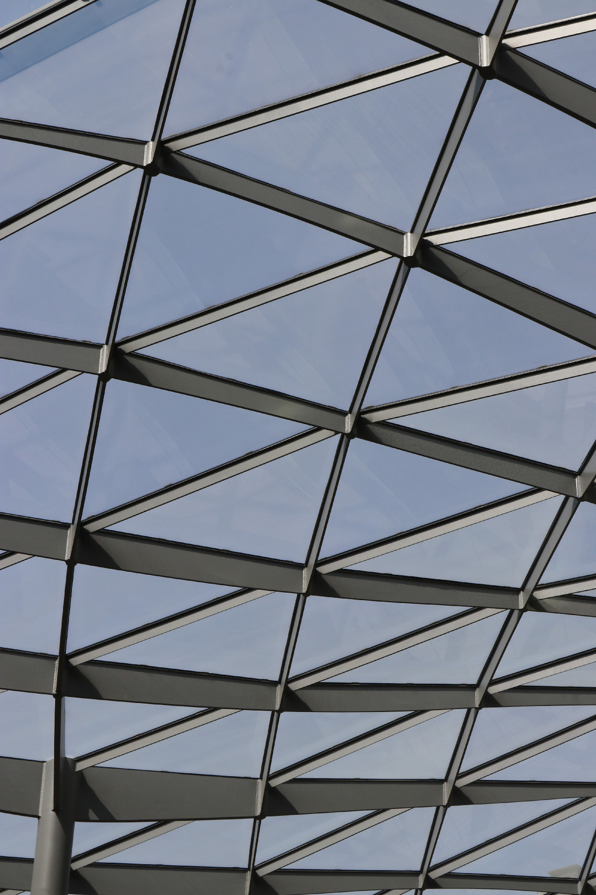 Chaque panneau triangulé de la verrière fait entre un et 4,6 m² de surface et 3,50 m de côté.