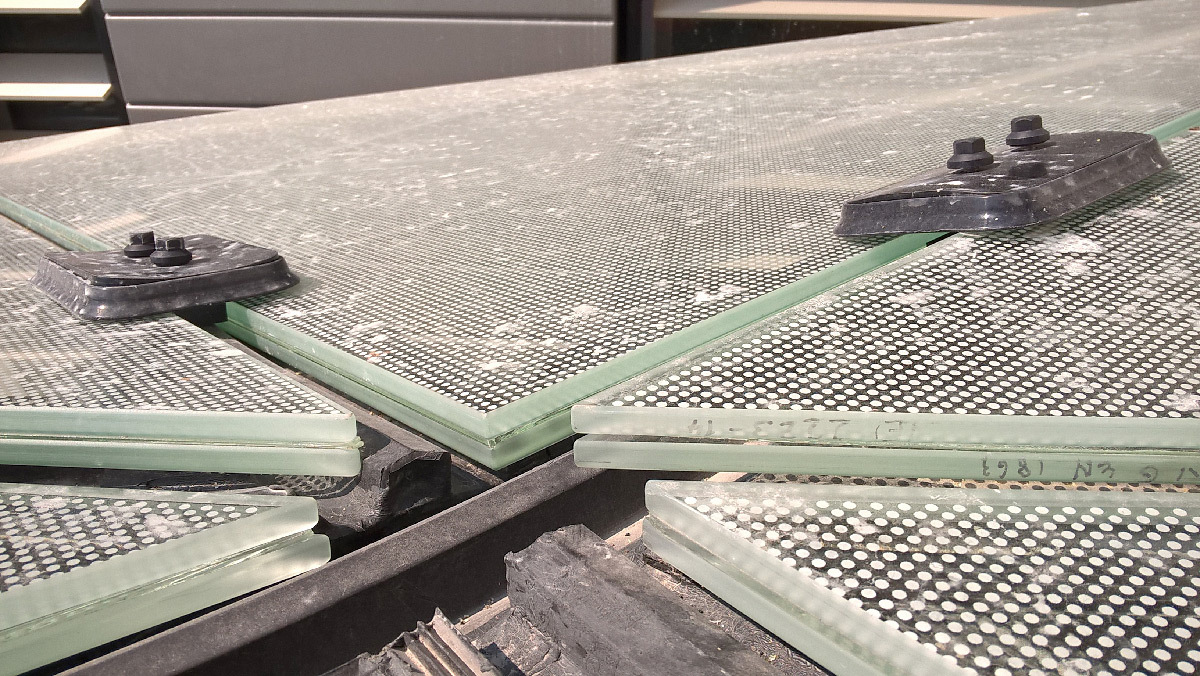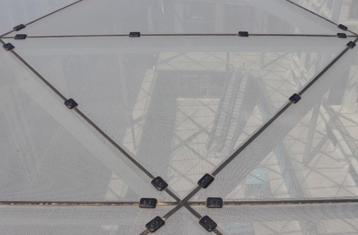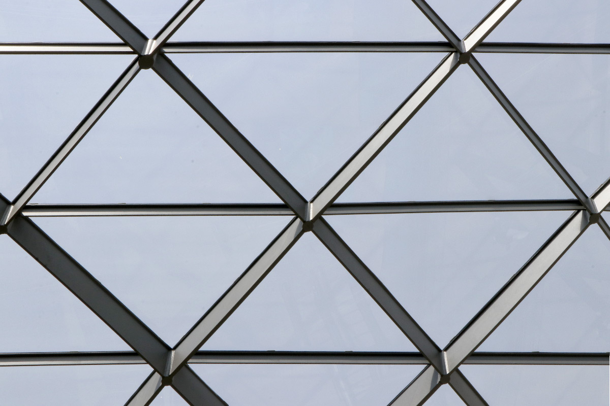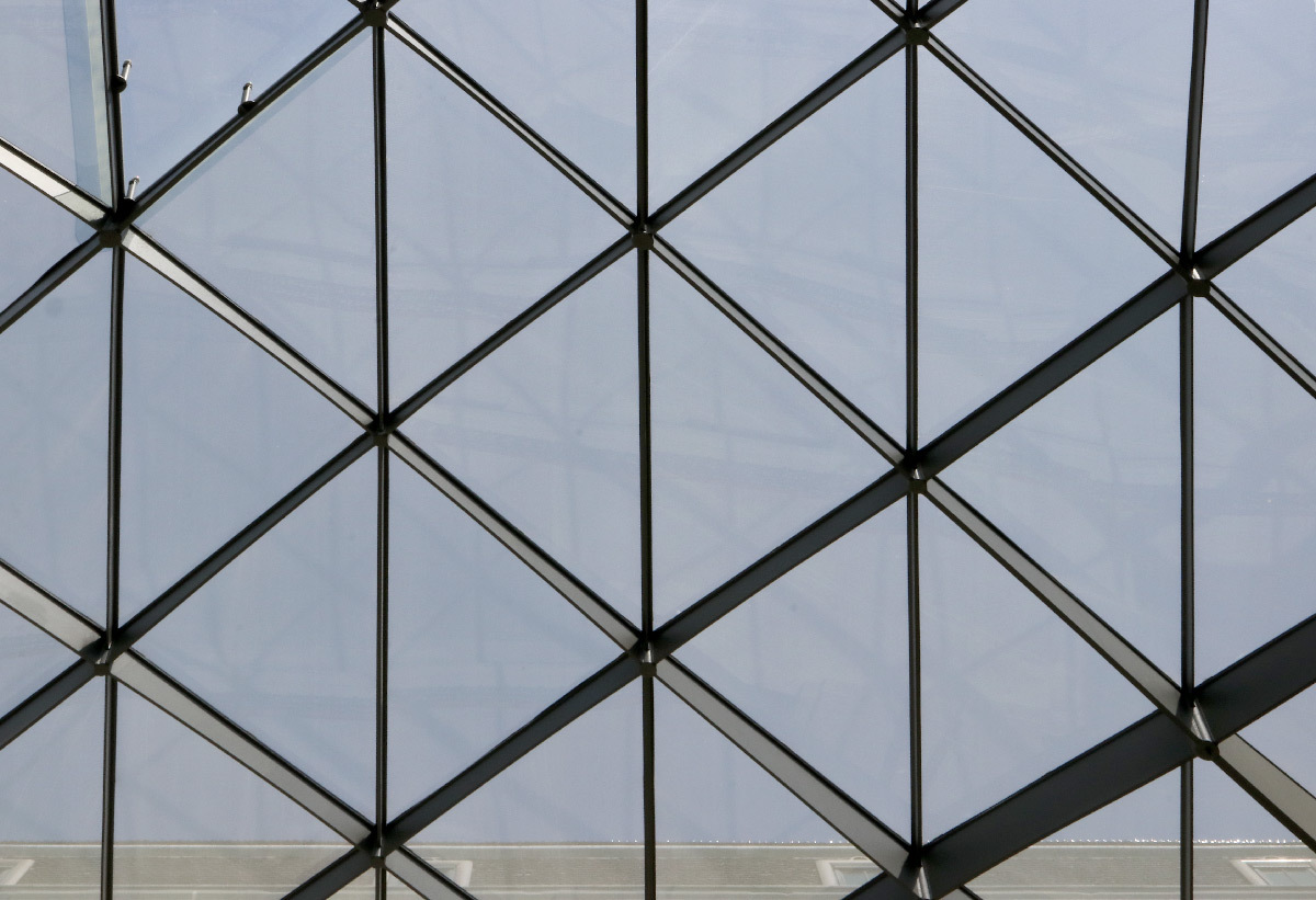 Chaque panneau triangulé de la verrière fait entre un et 4,6 m² de surface et 3,50 m de côté.