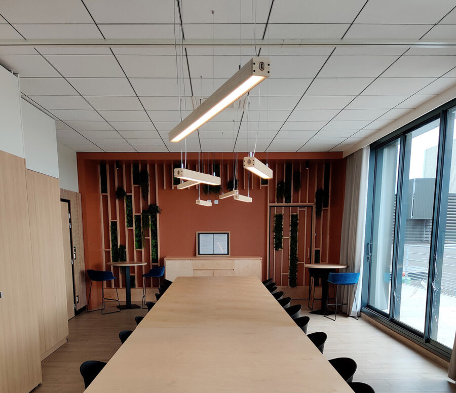 Photo en tête de l’article : Bureaux Celsius Transports, Cesson Sévigné, Ille-et-Vilaine – Architecte d-intérieur Creacom Dinan – Luminaires bois et photo © Kraken Lighting